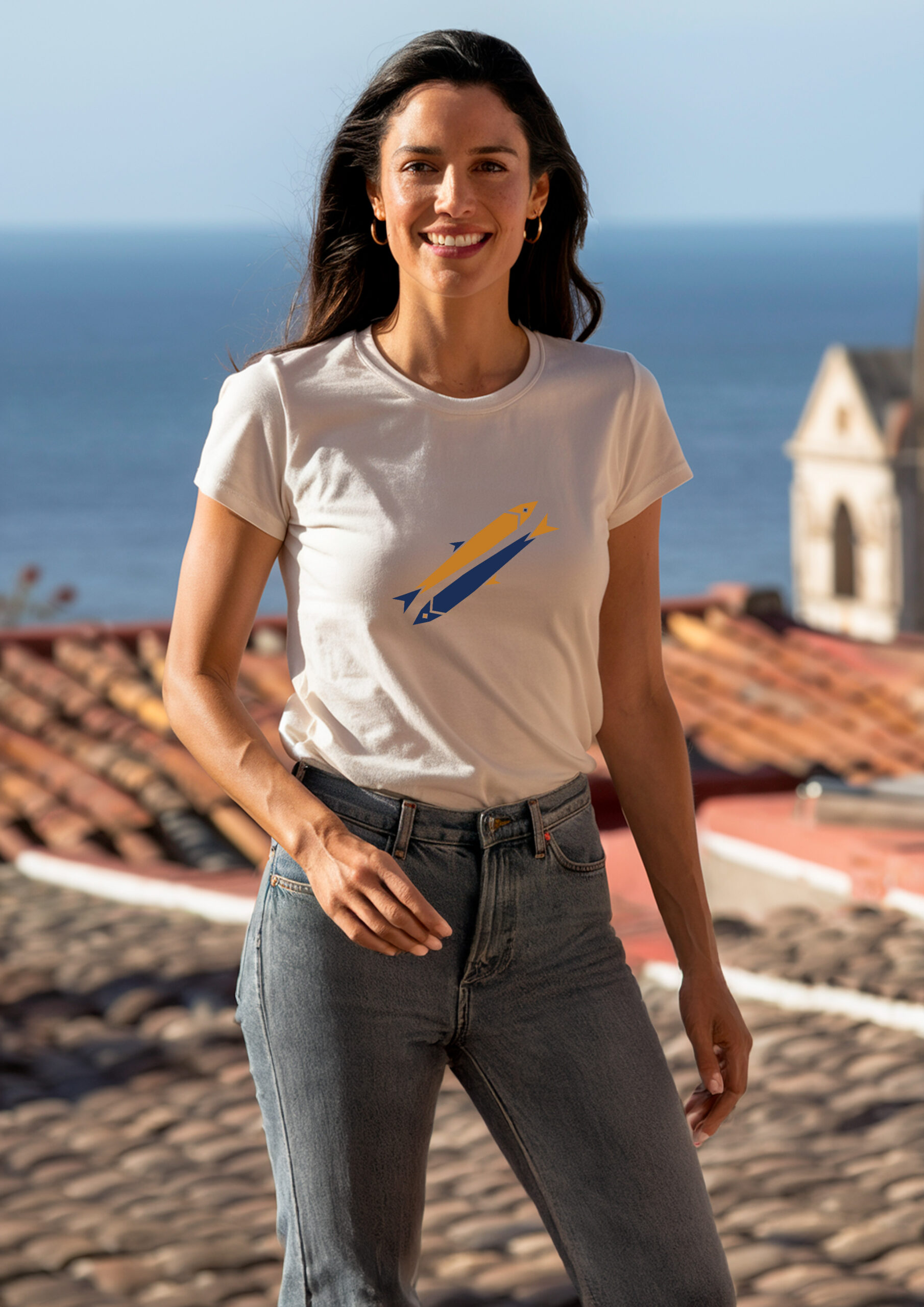 T-shirt donna a manica corta, ispirata alle acciughe, in siciliano “anciovi”, un omaggio alla straordinaria bellezza del mare Mediterraneo e dei suoi pesci. Realizzata in puro cotone con scollo ampio, dalla vestibilità sagomata e moderna.