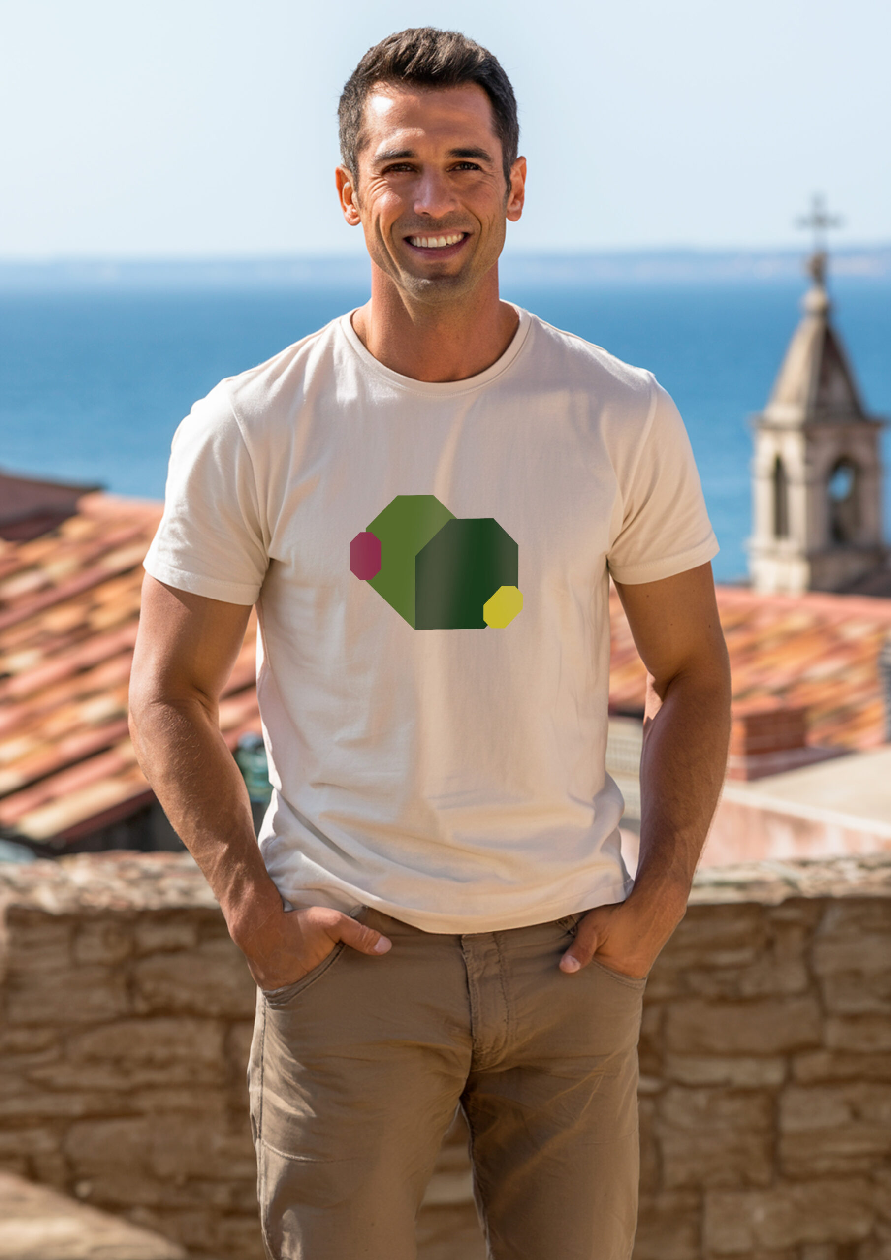T-shirt uomo a manica corta, ispirata al tipico paesaggio mediterraneo, decorato con i frutti colorati del ficodindia, simbolo di autenticità e tradizione, gusto e storia. Realizzata in puro cotone con scollo ampio, dalla vestibilità sagomata e moderna.