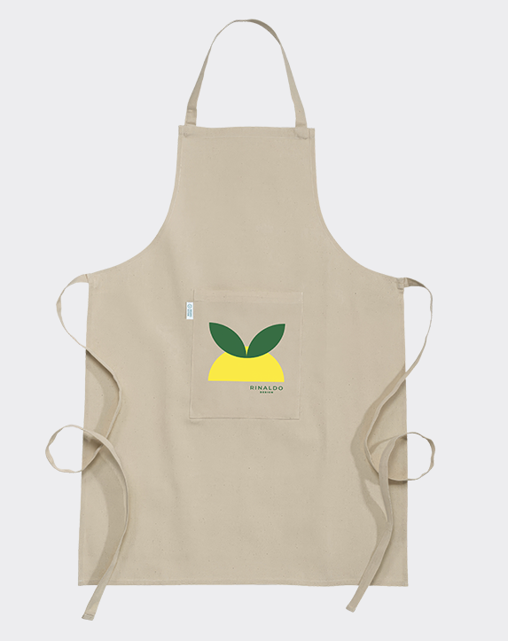 Grembiule lungo con tasca frontale ispirato agli agrumi di Sicilia, un simbolo intramontabile dell’Isola, qui rappresentato in un accessorio da cucina che combina praticità e stile.