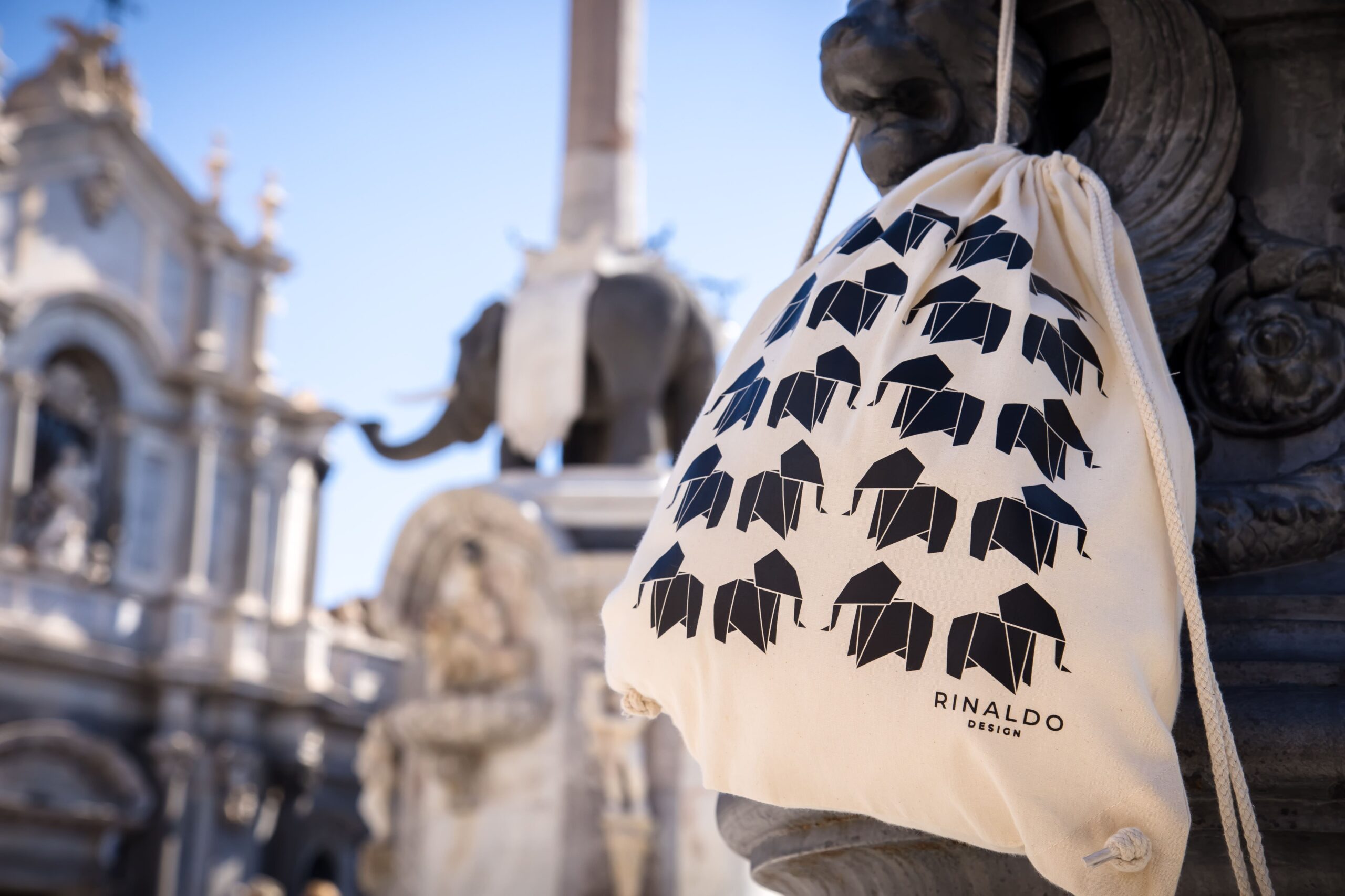 Sacca con cordoncino pratica e versatile dedicata a “u Liotru” – l’elefante di Catania – la fontana in pietra lavica, simbolo di forza e identità della città.